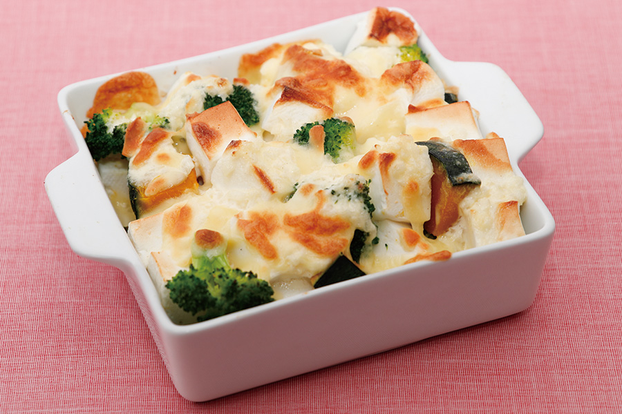 かぼちゃ、ブロッコリー、はんぺんのマヨチーズ焼き